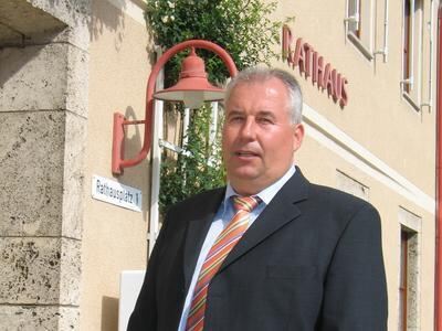 Die Sicht von außen ist für ihn ein Plus: BM-Kandidat Hans-Jörg Schalkowski vor dem Eninger Rathaus.