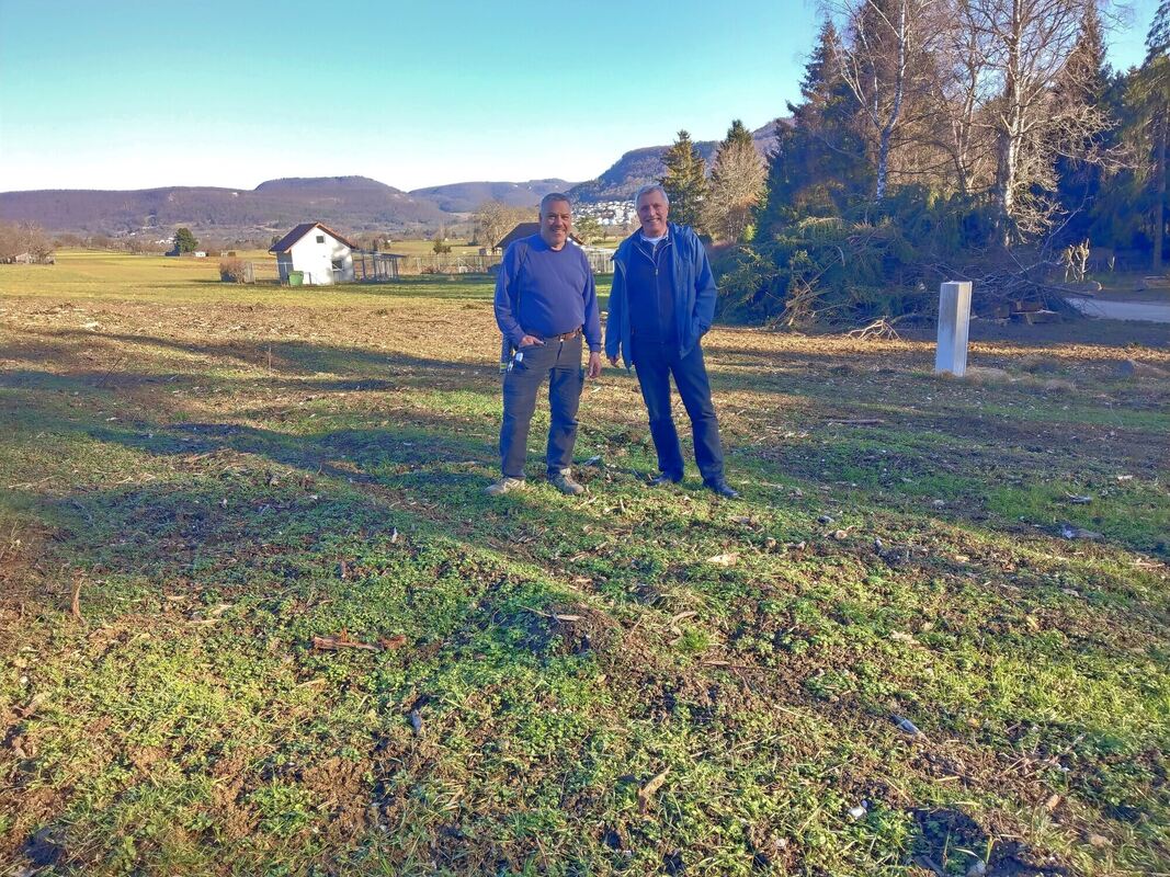 Walter Fromm (rechts) und Sven Hagmaier vom Vorstand des Obst- und Gartenbauvereins Pfullingen möchten dieses Grundstück nahe der Kleingartenanlage Schinderbronnen zu einem Treffpunkt des Vereins entwickeln.