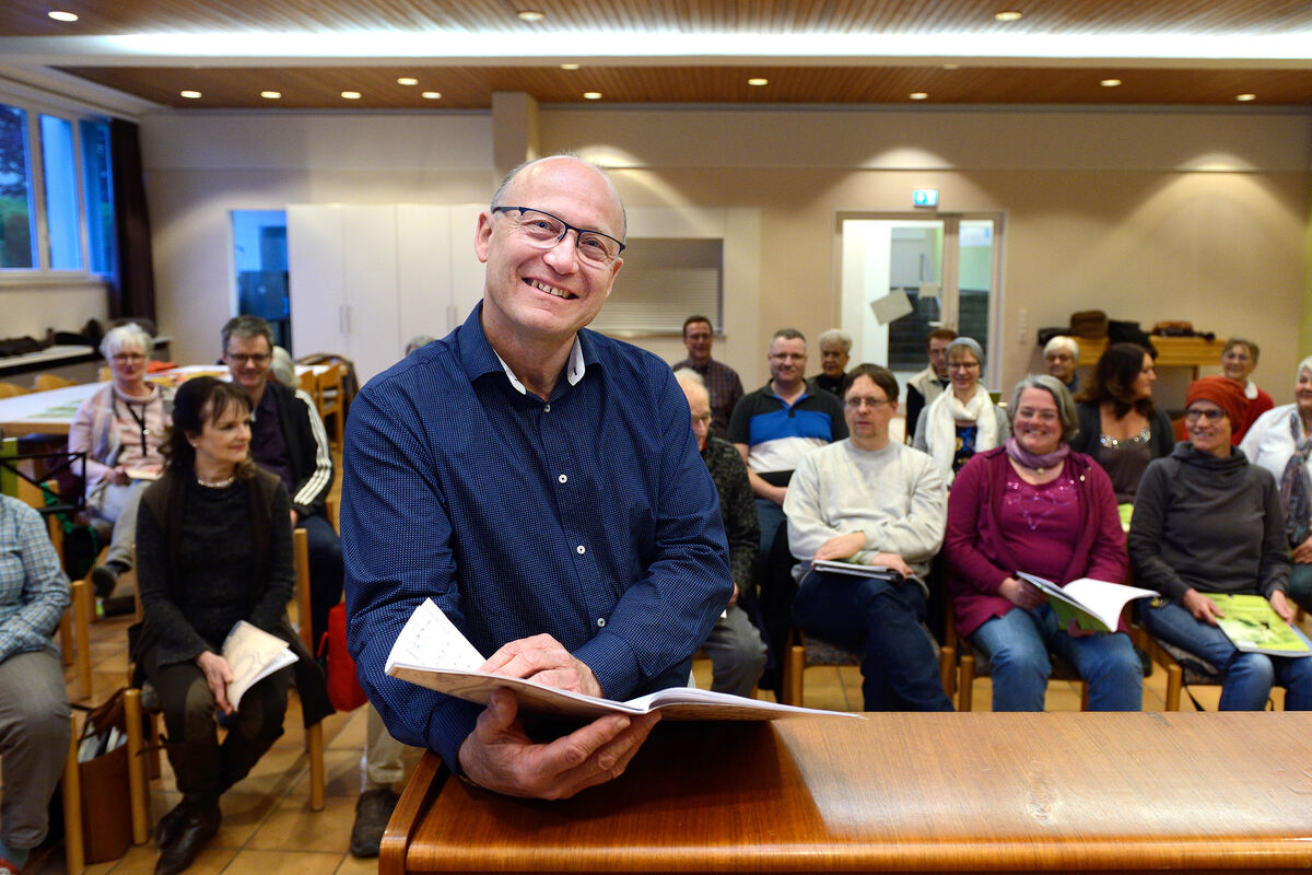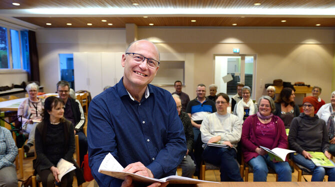Peter Hermann und sein Chor bei den Proben zur Ragtime-Messe, die am 2. Juni aufgeführt wird. FOTO: PIETH
