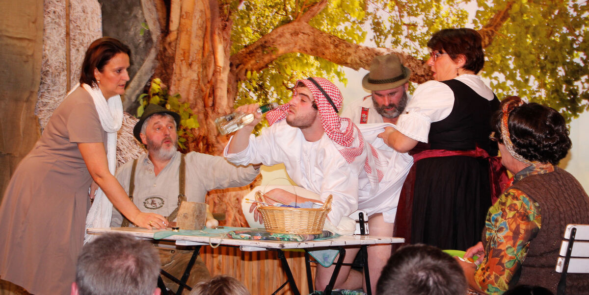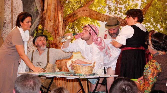 Die Mimen der Honauer »Zwiebelbäuch« verkörpern ihre Rollen meisterhaft und mit viel Herzblut, Witz und Mimik. Hier in voller Aktion zu sehen (von links) Bettina Werner, Thomas Biffart, David Epple, Jürgen Reiff, Carmen Epple und Carmen Vogelweyd. FOTO: LEIPPERT