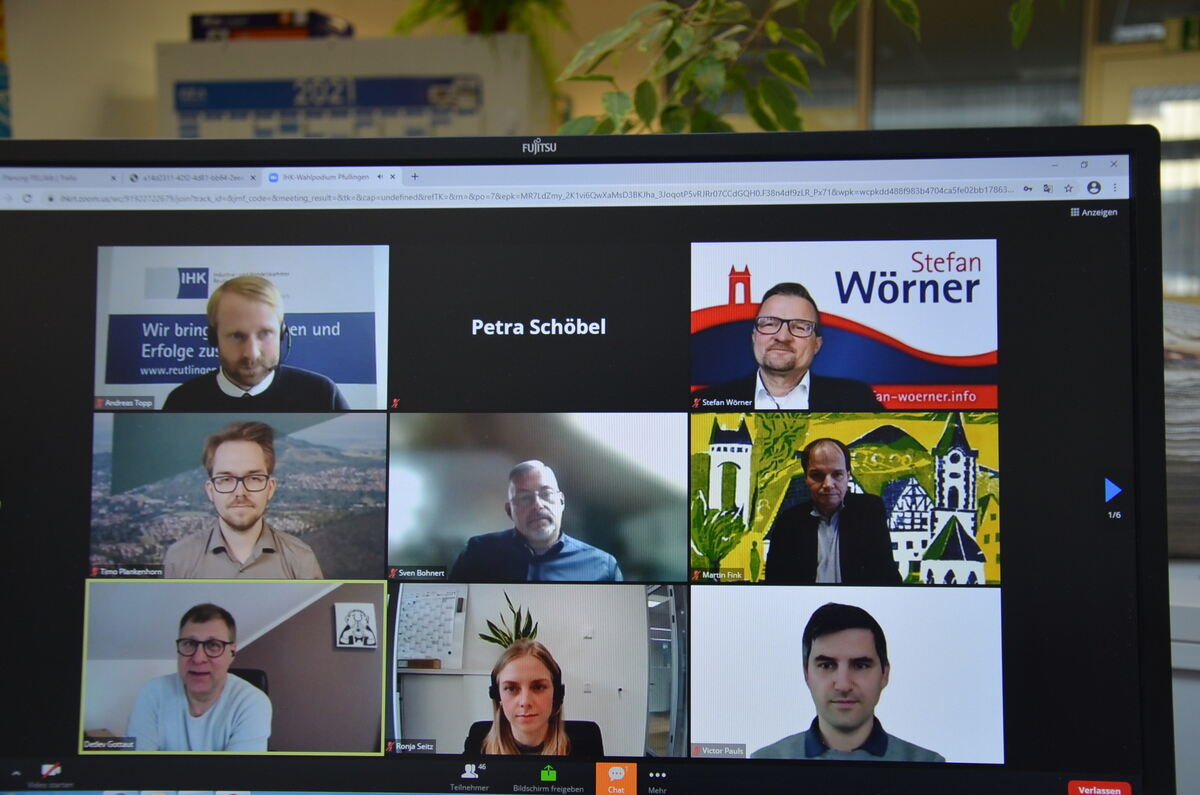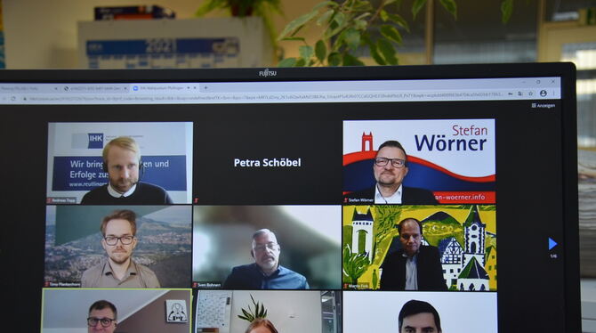 PFULLINGEN. Rund 60 Interessierte waren zur Diskussion mit den Kandidaten Stefan Wörner, Timo Plankenhorn, Detlev Gottaut, Martin Fink und Sven Bohnert zugeschaltet, die von Andreas Topp, Regionalmanager für den Landkreis Reutlingen bei der IHK, versiert moderiert wurde.