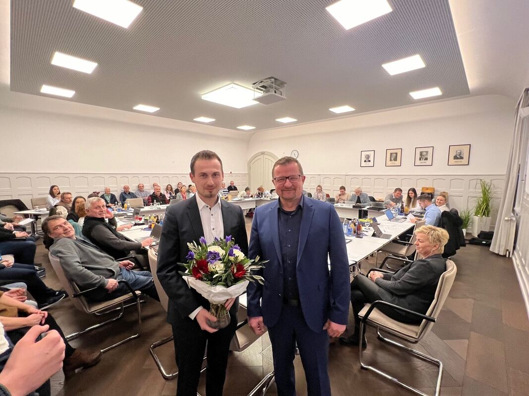 Der Pfullinger Gemeinderat wählte Manuel Baier (links) zum Ersten Beigeordneten der Stadt. Bürgermeister Stefan Wörner freute sich über das einstimmige Ergebnis.