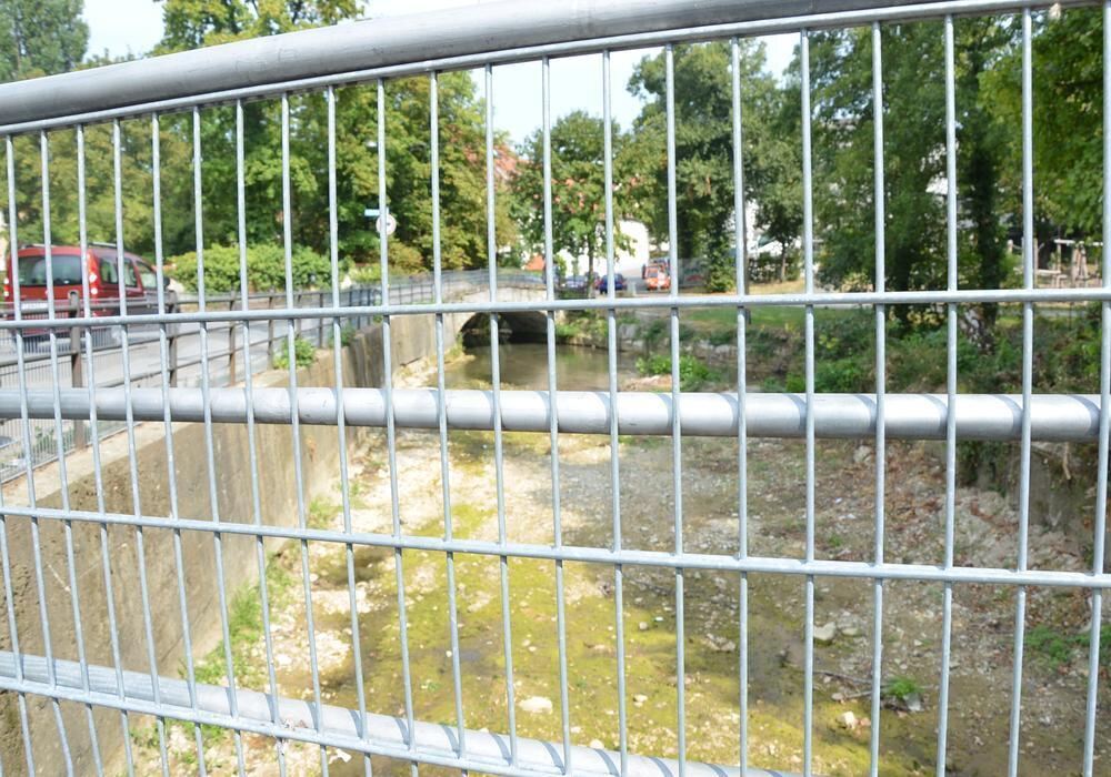 Die engmaschigen Gitter entlang der Bachläufe in Pfullingen – hier am Eierbach in der Schlossstraße – werden abgebaut.