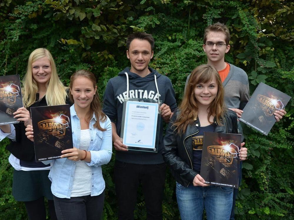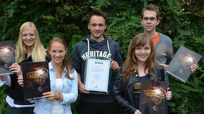 Die Abizeitung »Babicue – Wir sind heiß und brauchen Kohle«, entstanden am FSG Pfullingen, ist ausgezeichnet worden. Im Redaktionsteam dabei waren unter anderem (von links) Julika Wolf, Lea Wyndorps, Julian Bantle, Linda Zwerenz und Timo Plankenhorn.