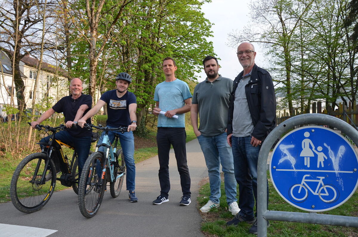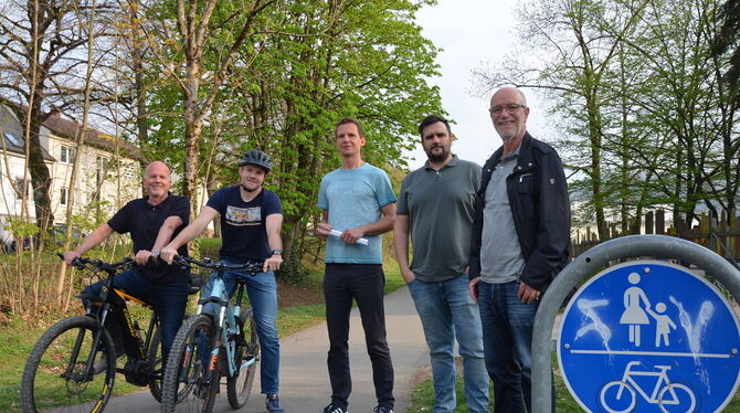 Harald Weigle (von links), Benjamin Renz, Dominik Guhr, Zeljko Lubina und Albrecht Gekeler machen jetzt gegen die Reaktivierung der alten Bahntrasse mobil. Sie möchten keinesfalls, dass die Regionalstadtbahn an ihren Häusern vorbeifährt.