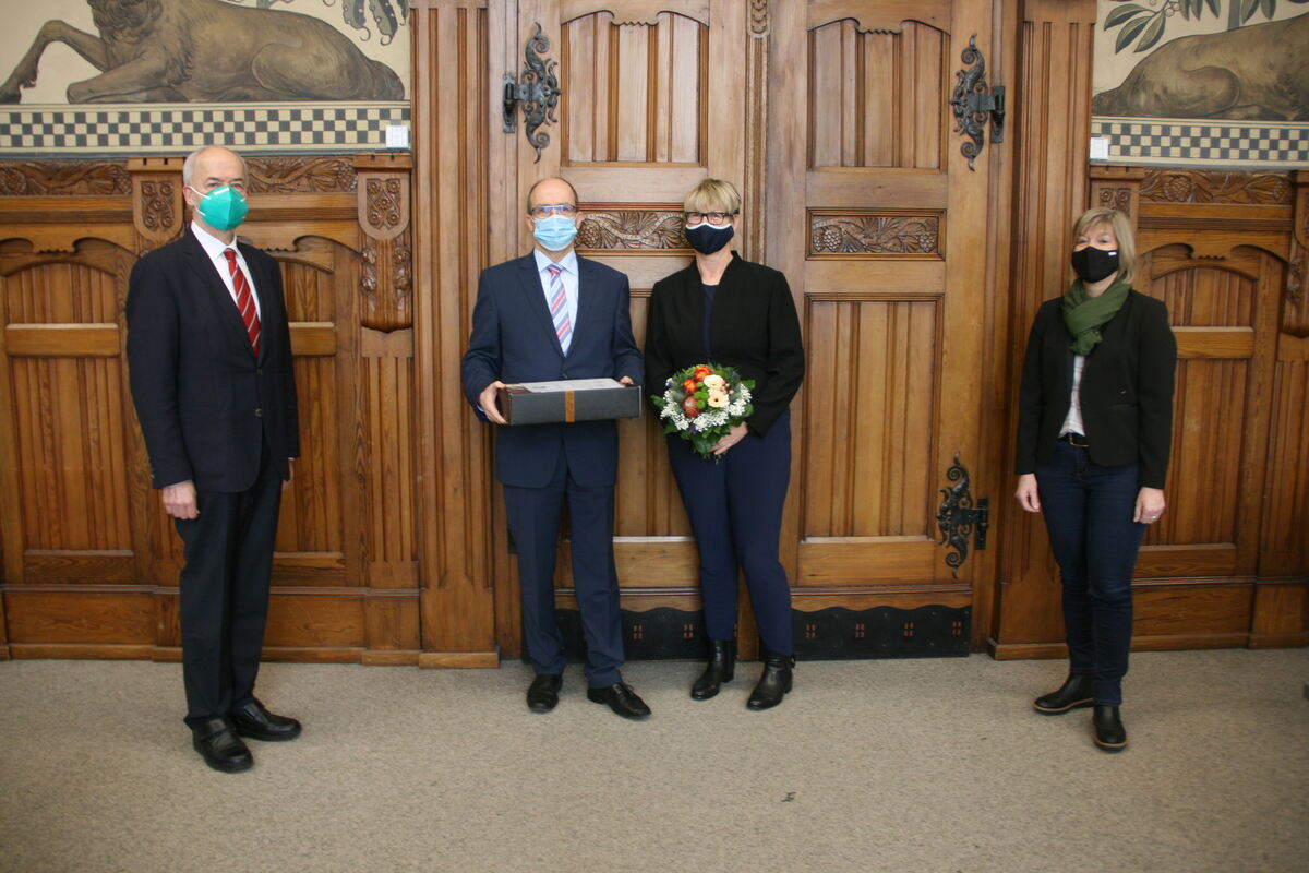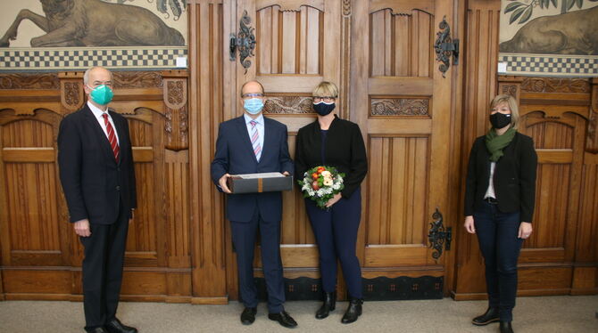 PFULLINGEN. Der Pfullinger Bürgermeister Michael Schrenk wurde am Mittwochnachmittag vom Reutlinger Landrat Thomas Reumann offiziell in den vorzeitigen Ruhestand verabschiedet. Auf Schrenks Wunsch, fand die Verabschiedung im engsten Kreis mit seiner Ehefrau Katrin, Elke Weiss, Leiterin des Amts für Kommunalaufsicht und Rechnungsprüfung und Landrat Reumann statt. Michael Schrenk wurde aufgrund einer dauerhaften Erkrankung auf der Grundlage einer amtsärztlichen Untersuchung wegen Dienstunfähigkeit zum 31. Dezember 2020 in den Ruhestand versetzt. Am Montag wurde die Entscheidung rechtskräftig und wurde am Dienstag im Rahmen in einer Pressekonferenz im Landratsamt offiziell verkündet. Seit einem halben Jahr konnte Pfullingens Bürgermeister aufgrund einer Erkrankung sein Amt nicht mehr ausüben. Seither übernimmt sein Stellvertreter Martin Fink die Stadtgeschäfte. Innerhalb der kommenden drei Monate sollen Neuwahlen stattfinden.
