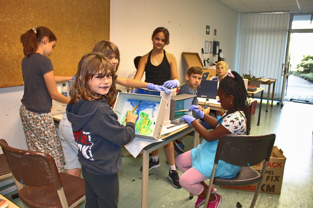 Pfullinger Ferienkinder gestalten mit Knetfiguren und gemalten Kulissen einen Animationsfilm