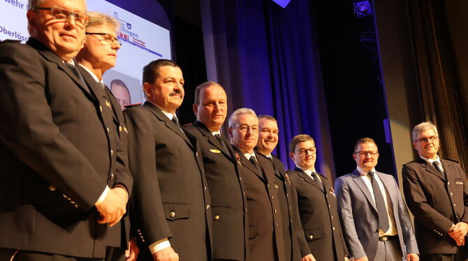 Für 50-jährige Dienstzeit wurden Bernhard Eisele und Jürgen Löffler ausgezeichnet, Bernd Fetzer für 45 Jahre sowie Wilfried Götz und Volker Fink für 40-jährige aktive Zeit. Martin Keppler ist seit 35 Jahren dabei, Volker Heinlin 30 Jahre, Philipp Grusa, Torsten Herrmann und Bastian Maier sind seit 25 Jahren aktiv. Auf eine 20-jährige Dienstzeit blicken Philipp Keppler, Jens Kümmerle, Tina Rebmann und Mark Reinhardt zurück, 15 Jahre sind Moritz Heinlin und Karina Stoll im aktiven Dienst. (GEA)