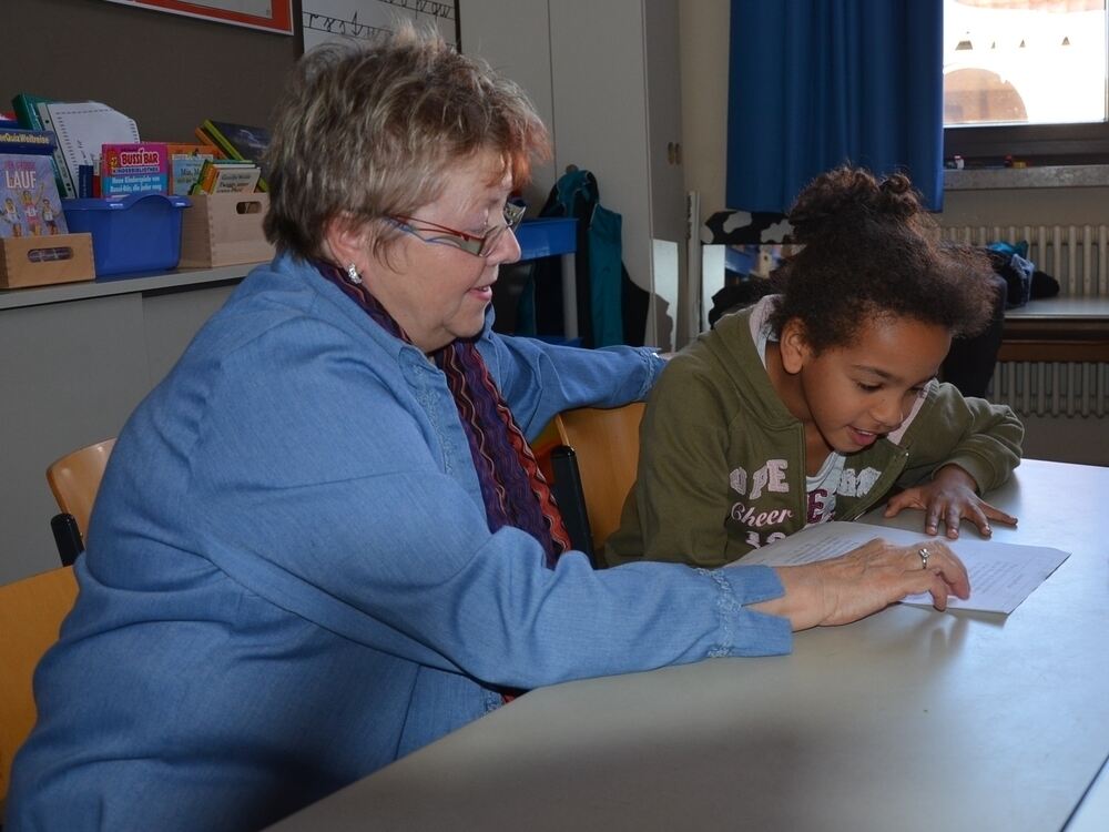 Die achtjährige Vanessa stammt aus einer Migrantenfamilie – zu Hause wird Rumänisch gesprochen. Daher tut sie sich mit dem Lesen von Schultexten schwerer als andere Schüler. Ihre Lesepatin Irmgard Vogel übt deshalb mit Vanessa einmal die Woche. FOTO: HOMOLKA