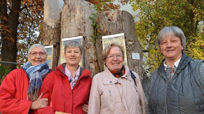 Monika Tischer, Karin Seelhorst, Gunhild Auer und Annette Herrmann (von links) vor dem Pfullinger Bücherbaum.