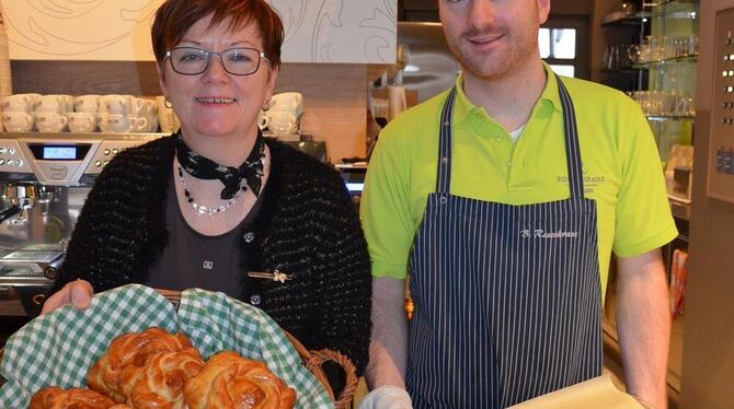 Bei Rosenkranz Genuss gibt es ausschließlich Sterne mit sieben Zacken, wie sie hier – frisch aus dem Backofen – von Ute und Bernd Rosenkranz gezeigt werden.
