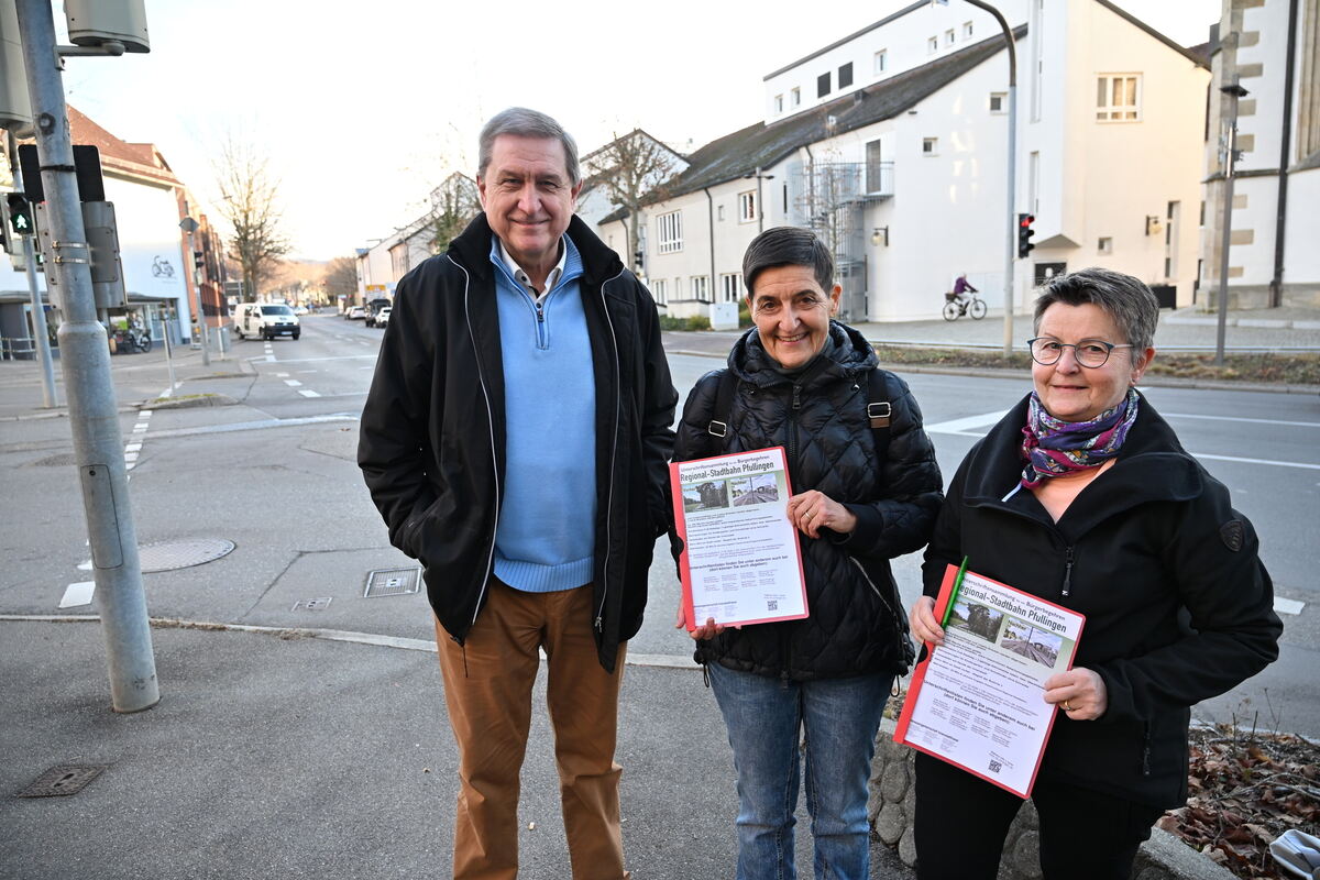 Reinhard Schneider, Cornelia Gekeler und Sieglinde Schairer (rechts) von der Interessengemeinschaft Innenstadttrasse.