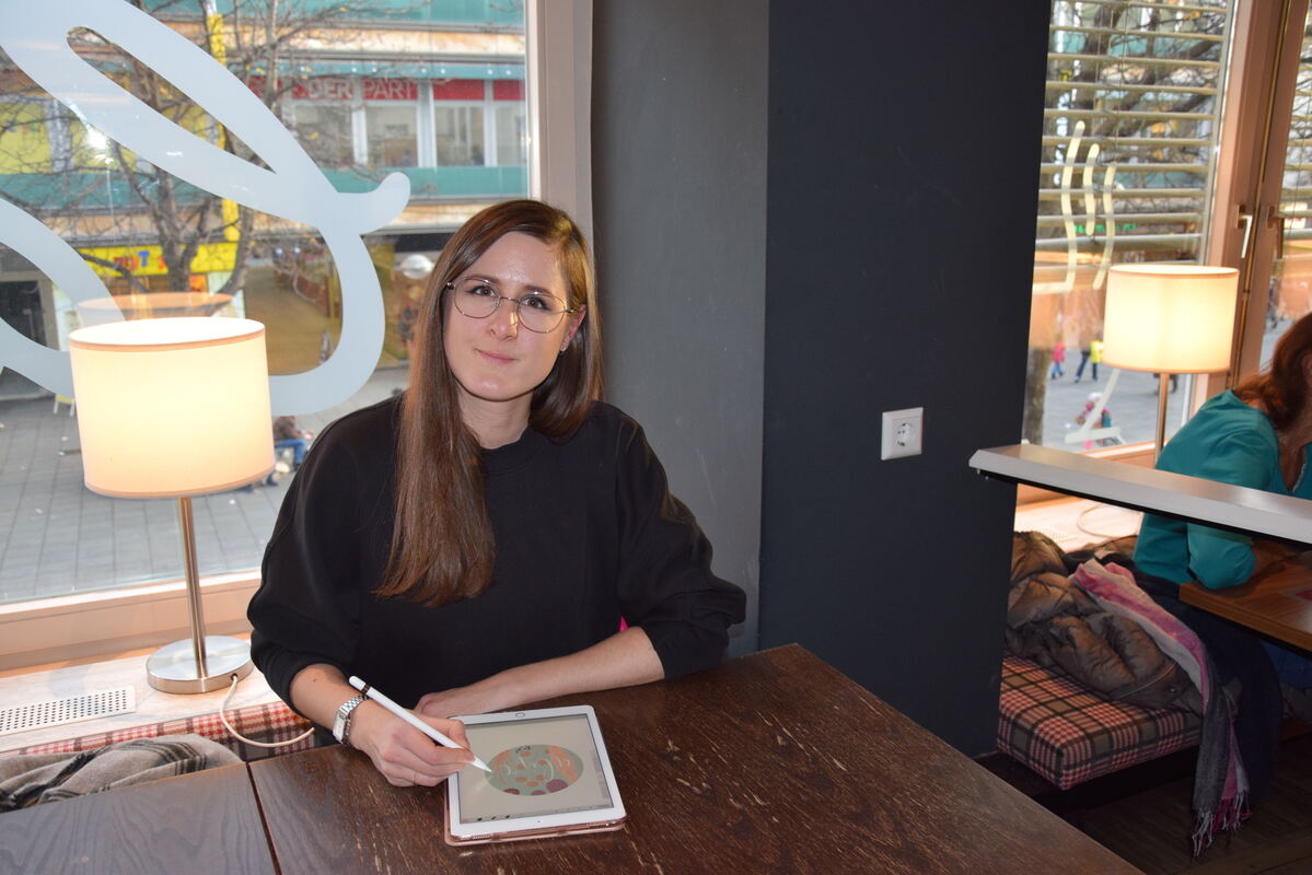 Selbst in einem Café zeichnet Liza Göhner Buchstaben und Motive. FOTO: KRAUTH