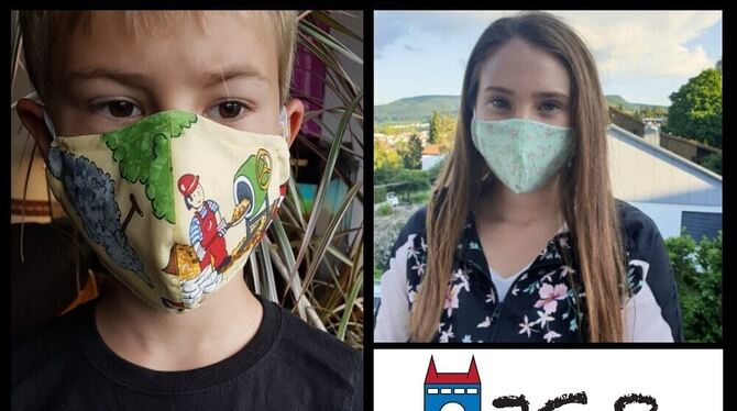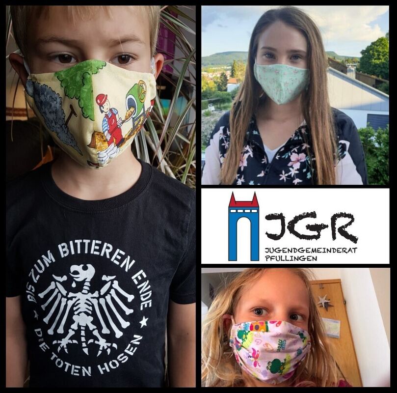 Jan Schössler (links) hat die Maskenchallenge des Pfullinger Jugendgemeinderats gewonnen, Platz zwei ging an Patricia Schwarz (oben rechts), Ina Häbe landete mit ihrer Maske auf dem dritten Platz. FOTOCOLLAGE: JGR