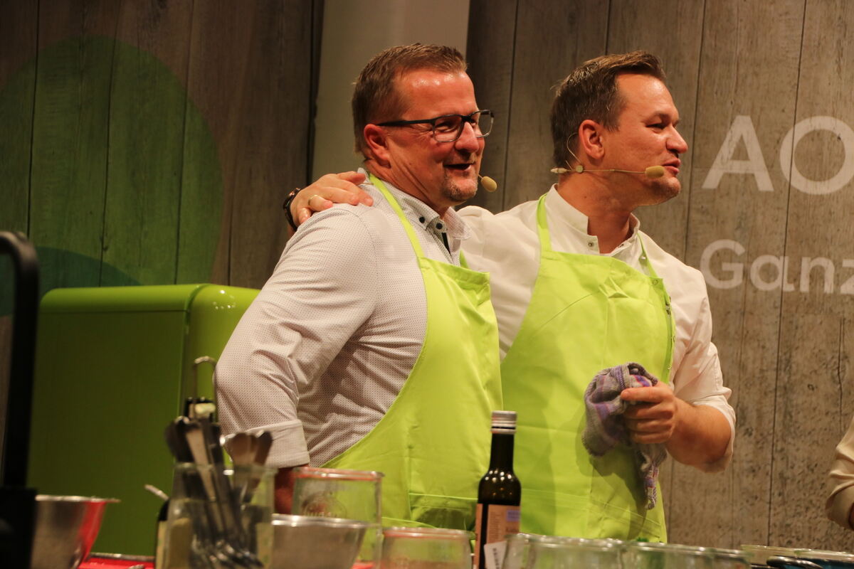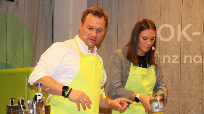 Kochend-kalauerndes Dream-Team am Herd: Pfullingens Bürgermeister Stefan Wörner (links) und Sternekoch Simon Tress aus Ehestetten.