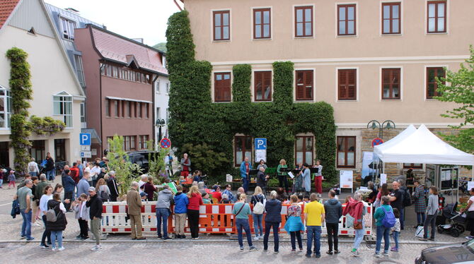 »12 Quadratmeter Kultur«: Statt Autos fand auf den drei Parkplätzen vor dem Eninger Rathaus ein buntes Kulturprogramm statt. Zahlreiche Besucher verfolgten das Spektakel in der Achalmgemeinde.