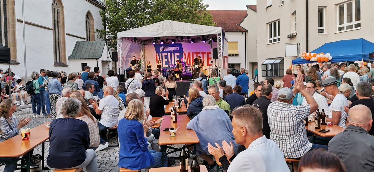 PFULLINGEN. Dass es einen Unterschied macht, wenn Stadtverwaltung, Kulturinitiative und Vereine sich engagieren, um Leben in die Innenstadt zu bringen, zeigte sich einmal mehr am Freitagabend, als die von Jochen Probst geleiteten Bands der Städtischen Musikschule und Phil Haydt die Neue Mitte rockten: Die Pfullinger strömten auf den Marktplatz, um gute Musik zu hören, miteinander zu feiern und den Sommerabend zu genießen.