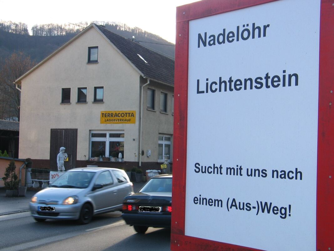Die Aussage stimmt noch heute: Ein Bild, aus den Zeiten als Lichtenstein, darum kämpfte, mit dem Albaufstieg in den vordringlichen Bedarf des Bundesverkehrswegplans zu kommen.