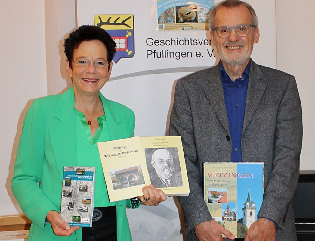 Bei der Jahreshauptversammlung tauschten Prof. Waltraud Pustal und Rudolf Renz auch Veröffentlichungen beider Vereine aus.