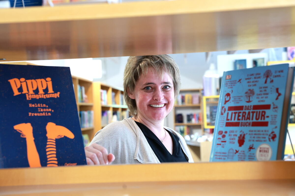 Offen und unkonventionell: Sabine Fischer ist die neue Leiterin der Pfullinger Bücherei. Pippi musste unbedingt mit aufs Foto.
