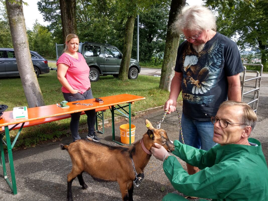 Insgesamt bewertet Bernhard Glöckler, staatlicher Zuchtleiter für Schaf und Ziege Baden-Württemberg und Vorsitzende der Fachkommission, die Tiere als sehr gut. Unter den Augen der Körexperten Dr. Ulrich Jaudas (Lenningen), Dr. Pera Herold (Großerlach), Dr. Scharf sowie Johannes Maibom, Vorsitzender des Landesverbands Bayerischer Ziegenzüchter, führen die Besitzer ihre Böcke in den Ring.
