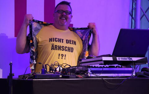 Auf der Bühne gehts ab mit (von links) Jessy, Organisator Ralf Schmied, Garcia und DJ Ernst O.