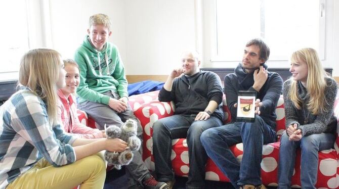 Beim SMV-Team laufen die Fäden für die Organisation der Projektwoche »Schule als Staat« zusammen. Zippora Klaiber (von links), Lea Wyndorps, Felix Mayer, Christian Schiff, Jochen Rohn und Deborah Häbe sowie noch einige Schüler mehr, die beim Fototermin nicht dabei sein konnten, treffen sich häufig in Pausen oder über die Mittagszeit. Das kleine Foto zeigt das Wappen des »Chillerländles« FOTO: PR
