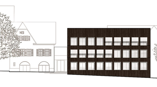 Schwarz und mit Scheddach: Auch so hätte Pfullinger Rathausbau aussehen können