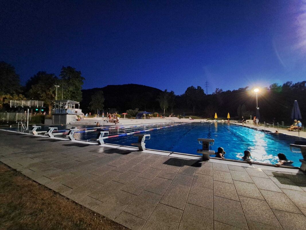 Im Freibad werden bis in die Nacht die Flutlichter leuchten und den Gästen extra lange Badezeiten bescheren, teilt die Stadtverwaltung mit. Geöffnet ist das Bad dann bis um 22 Uhr, Einlass-Ende entsprechend eine Stunde früher und Badeschluss ist um 21.40 Uhr. Einzig das Planschbecken ist bereits ab 18.40 Uhr, also zum üblichen Badeschlusszeitpunkt, geschlossen.