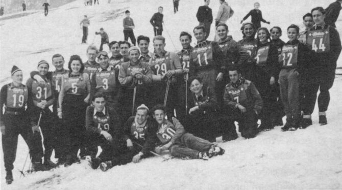 Viele Teilnehmer und viel Publikum gab’s bei den ersten Vereinsmeisterschaften, die die VfL-Skiabteilung im Januar 1949 am Pfullinger Wasen ausrichtete. FOTO: BURGEMEISTER