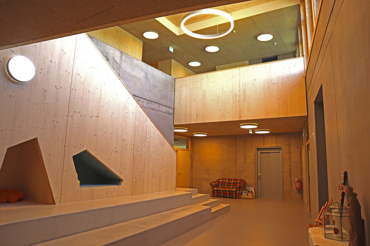 Egal ob im Bewegungsraum, im Atelier oder in der Holzwerkstatt: »Die Kinder haben hier so viele Möglichkeiten, sich kreativ und sportlich auszuleben. Das kommt gut an«, sagt Reißner. Im Obergeschoss sind die Kindergartenkinder und im Untergeschoss die Krippenkinder untergebracht. Im Kinderrestaurant treffen sie aufeinander.