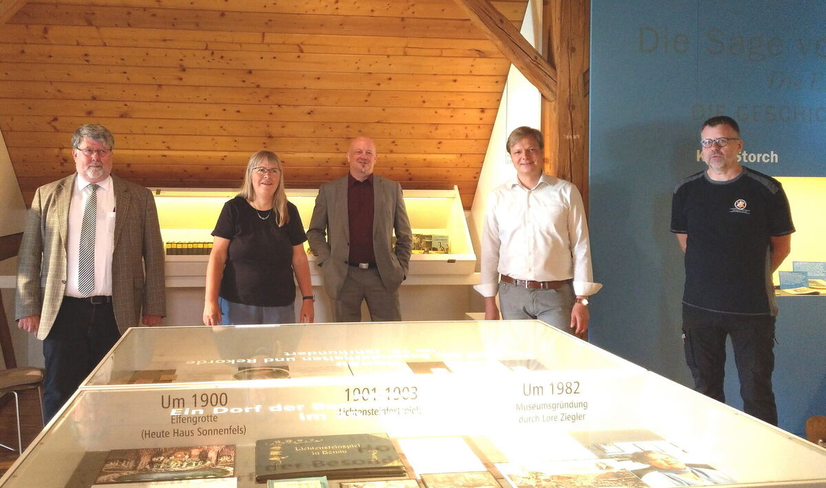 LICHTENSTEIN. Die Olgahöhle in Honau ist nicht nur die größte Kalktuff-Schauhöhle Deutschlands, sie war auch schon elektrisch beleuchtet, lange bevor in Privathaushalten das Licht anging. Diese Besonderheiten und noch viele mehr zeichnen den Ort aus. Mit der Sonderausstellung »Honau. Ein Dorf der Besonderheiten und Rekorde« widmet sich das Wilhelm-Hauff-Museum in zwei Vitrinen dem Ort im Echaztal. Am Freitag ist die Ausstellung offiziell vorgestellt worden.