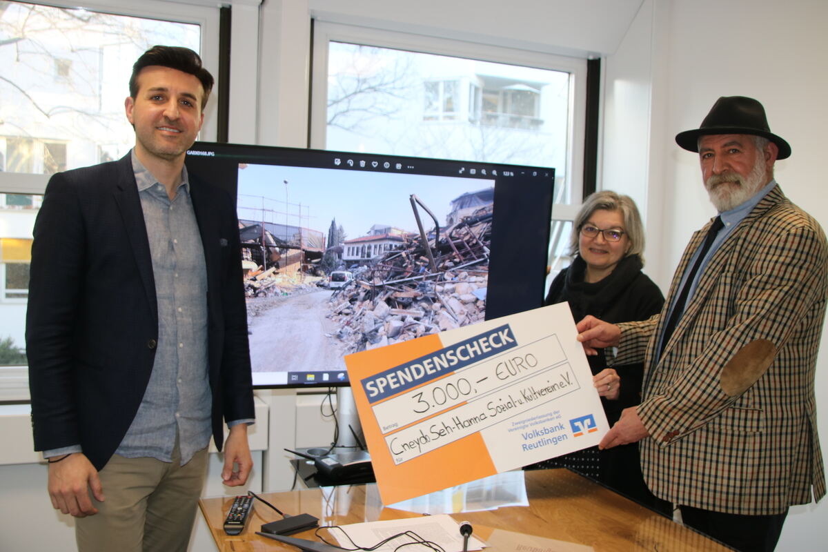 Zudem organisiert der Cneydo Seh-Hanna Sozial- und Kulturverein am kommenden Samstag, 22. April, eine Spendenaktion auf dem Eninger Rathausplatz, unterstützt von der bürgerlichen und den kirchlichen Gemeinden. Dann werden unter anderem kulinarische Spezialitäten aus der Region Hatay verkauft, Informationen über die Spendenaktion und das Erdbebengebiet wird es aus erster Hand geben. (GEA)