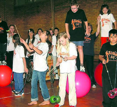 Zirkus gibt's da auf jeden Fall: Die Jugendlichen um Sonderschullehrerin Katharina Kirchgeßner in voller Aktion.