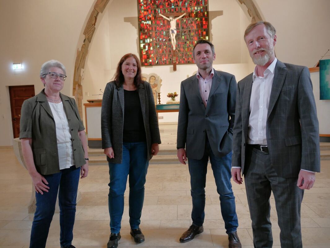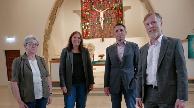 Eningens Kirchengemeinderats-Vorsitzende Ingrid Schaar (von links), Katharina Dolmetsch-Heyduck, Benjamin Lindner und Johannes Eißler sind sich einig, dass es Veränderungen durch den Pfarrplan 2030 geben wird – es gelte aber, sie zu gestalten. FOTO: LEISTER