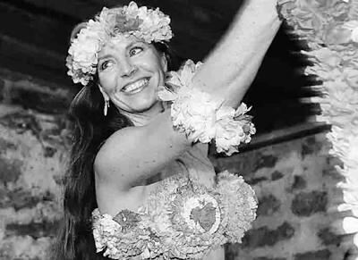 Schwungvoll im Keller: Christine Stuhlinger zeigt sich hawaiianisch.