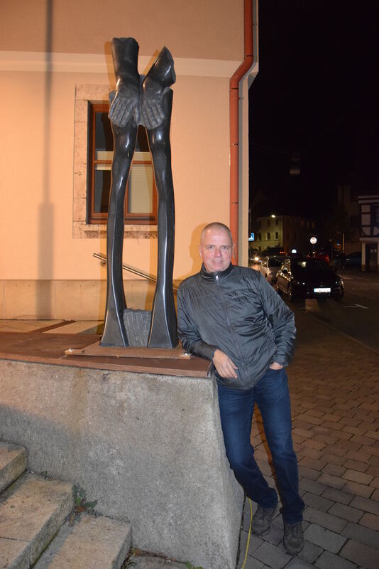 Viele von Christoph Traubs Werken sind im öffentlichen Raum ausgestellt. Nach Eningen fand der Schorndorfer über MarEl Schäfer vom Förderverein Eninger Kunstwege. foto: hailfinger