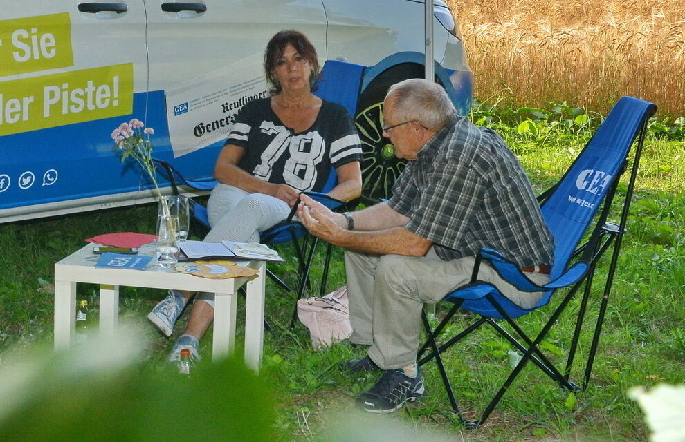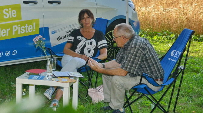 Vegetarierin Gabi Widmaier und Fleischgenießer Dieter Schmidt haben nahe der Eninger Weide über das Thema Fleischkonsum gesprochen