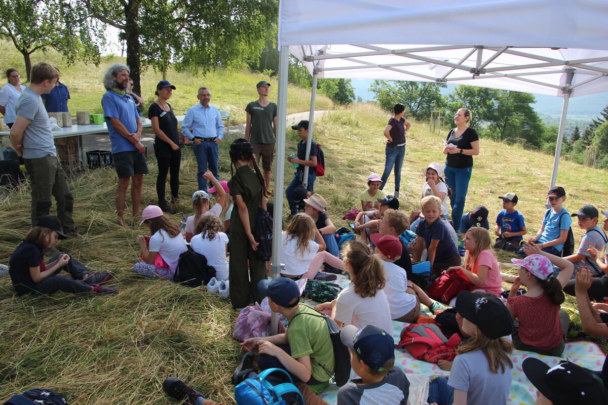 An der Achalm statt im Klassenzimmer: Drittklässler aus Eningen lernen die Kulturlandschaft in ihrer unmittelbaren Umgebung kennen bei einem Streuobst-Projekt der Flächenagentur Baden-Württemberg. FOTOS: FÖRDER