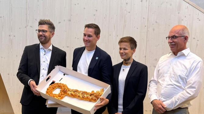 Sindek sprach allen Beteiligten seinen Dank aus: den Architekten und Projektverantwortlichen, den Fachplanern und Bauunternehmen, dem Team des Ortsbauamts sowie dem Gemeinde- und Kirchengemeinderat. Besonderer Dank galt der Nachbarschaft für ihr Verständnis in der Bauzeit. Anschließend folgten Beiträge des Vorsitzenden des Kirchengemeinderats, Martin Brauße, sowie von Architekt Dominik Dieringer. Dann wurde der symbolische Schlüssel übergeben in Form eines duftenden Hefezopfschlüssels. Diakon Dr. Wollek segnete das Gebäude.