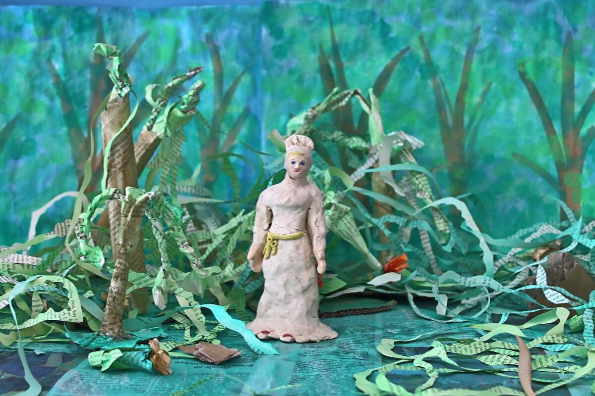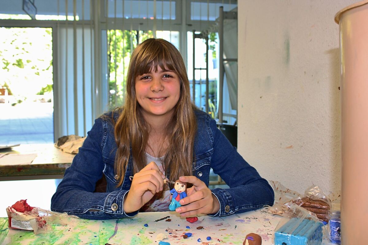 Am Freitag, dem letzten Tag, ging es noch einmal ganz locker zu. Die Schülerinnen und Schüler kneteten sich selbst, sozusagen als Avatar, um damit den Film-Abspann zu beleben. Anschließend ging es ans Malen von Pfullinger Sagenlandschaften, um sich mit dem Thema noch einmal zu befassen, die Fantasie spielen zu lassen und einzutauchen in märchenhafte Erzählungen. (GEA)