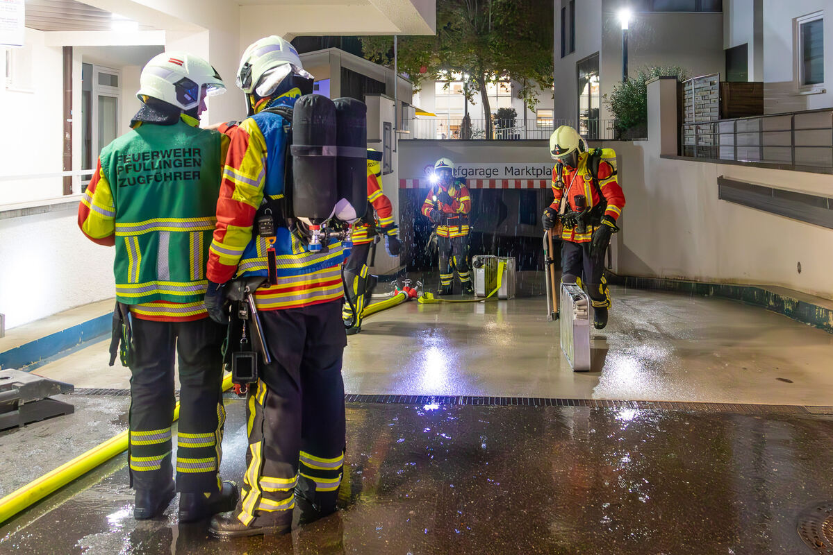 In den Tiefgaragen Marktplatz und DEZ hat die Pfullinger Feuerwehr am Donnerstagabend den Ernstfall für einen Einsatz in unterirdischen Verkehrsanlagen geübt.