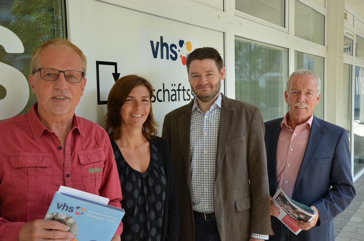 Die VHS Pfullingen ist mitten im Umbruch. Für ihren stellvertretenden Leiter Martin Kissling war es das letzte Semester-Programm, das er gemeinsam unter anderem mit Anja Haid-Licht auf die Beine gestellt hat. Sein Nachfolger Alexander Tomisch hat Anfang der Woche seinen Dienst angetreten. VHS-Leiter Ulrich Vöhringer geht Ende des Jahres in den Ruhestand. Seine Nachfolgerin soll noch dieses Jahr die Arbeit aufnehmen (von links). FOTO: SAUTTER