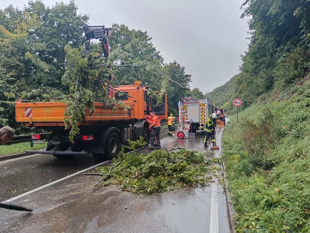 Lichtensteins Feuerwehrkommandant Andreas Daum vermutet, dass der seit Sonntag anhaltende starke Niederschlag dafür sorgte, dass der 20 Meter große Laubbaum keinen Halt mehr hatte. Der rund 70 Zentimeter starke Stamm kippte mit samt dem Teller um, Äste und Zweige landeten kurz nach 11 Uhr auf der Honauer Steige und blockierten den Verkehr.
