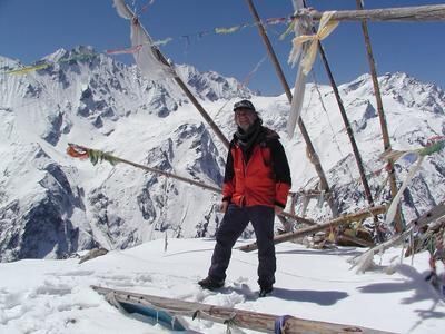 Wolfgang Henzler auf dem Tsergo Ri (4 934 Meter) nahe der tibetischen Grenze. Im Hintergrund sind die Fünf- und Sechstausender der Cangjale-Himal-Gruppe zu sehen.