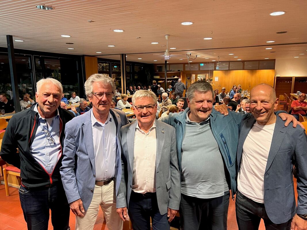 Der Ehrenvorsitzende Gert Seeger (von links) mit den Geehrten Hans-Peter Lange, Sven Schauenburg und Roland Pauckner sowie Hans-Georg Finkbohner, 2. Vorsitzender des VfL Pfullingen, im Jahnhaus. FOTOS: SAUTTER