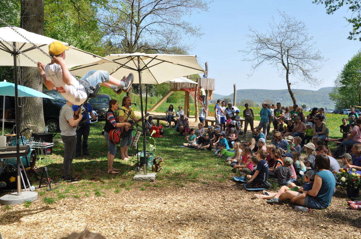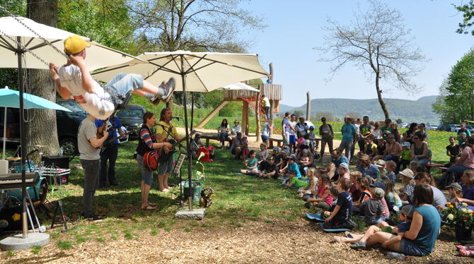 Bei bestem Wetter feierten Kinder und Eltern, aber auch viele Ehemalige beim Tannenwald das zwanzigjährige Bestehen des Pfullinger Waldkindergartens. FOTO: BIMEK