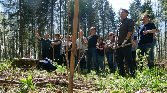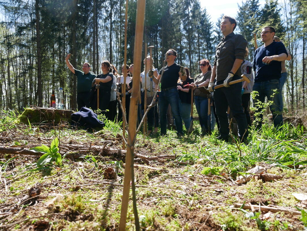 Stolz wie Bolle präsentierten sich die Beschäftigten von Solcom am vergangenen Freitag im Wald bei der Ruine Greifensten nach ihrer Baumpflanzaktion.