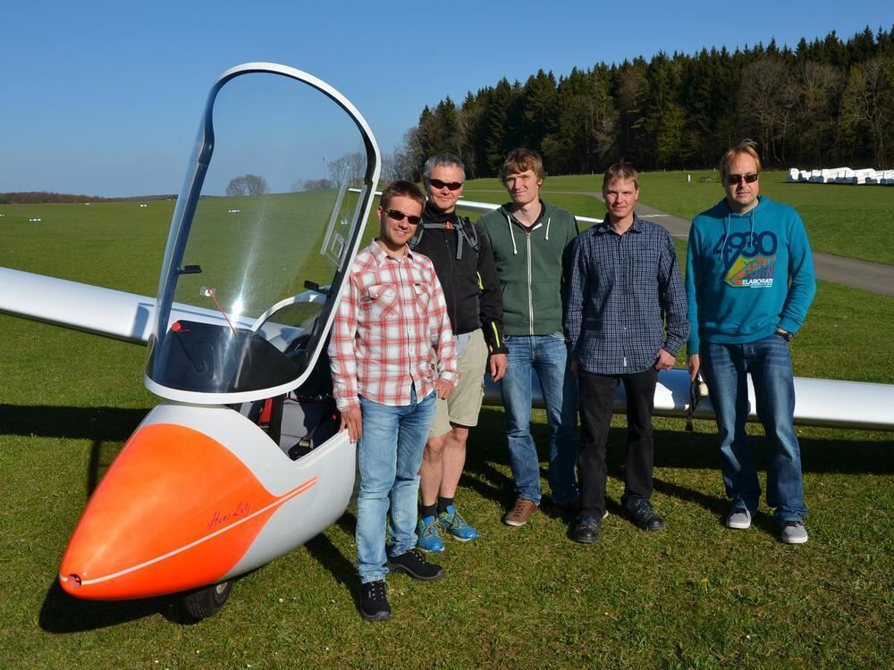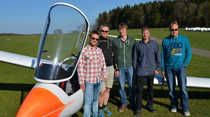 Für sie ist das Segelfliegen eine Leidenschaft, die sie auf dem Flugplatz Übersberg gern auch anderen vermitteln wollen: Marc Bitzer (von links), Jan von Richthofen, Felix Blendinger, Joachim Reichel und Philipp Nierkamp sind Fluglehrer beim Luftsportverein Reutlingen.