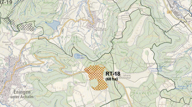 Das Gebiet RT-18 im Regionalplan für Windenergie-Vorranggebiete liegt auf Eninger Gemarkung.